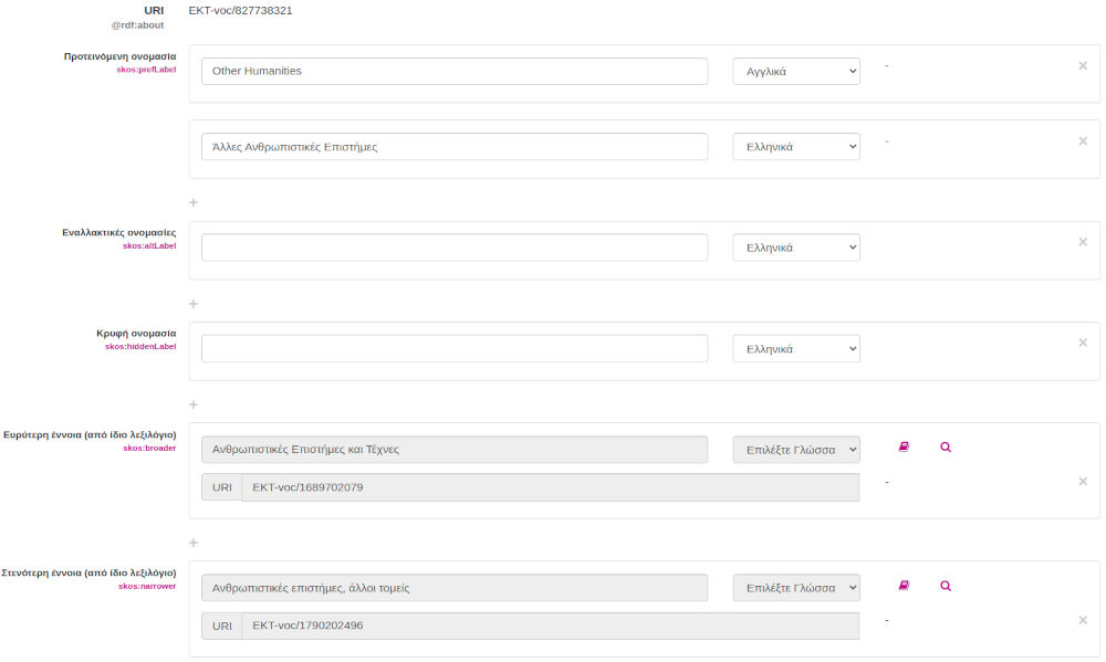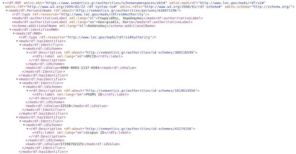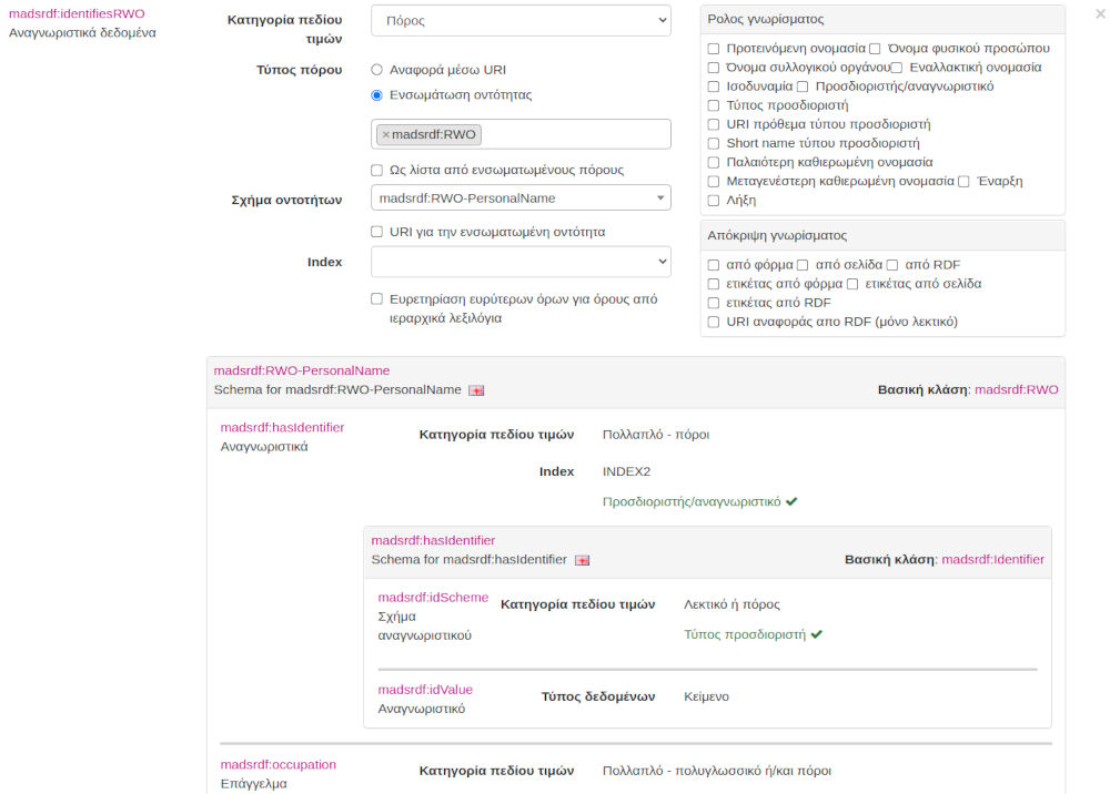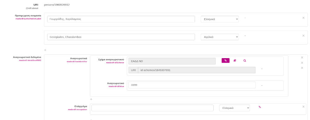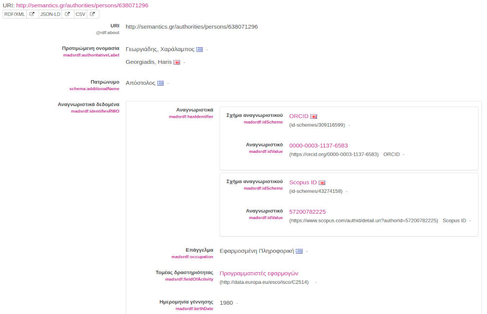 Σελίδα παρουσίασης ενός MADS/RDF PersonalName σημασιολογικού πόρου