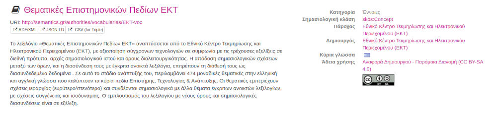 Στόχος του ΕΚΤ, ευρύτερα, είναι το Semantics.gr να αποτελέσει μία κεντρική δημόσια πλατφόρμα στην οποία δημοσιεύονται έγκριτα λεξιλόγια προς χρήση και επανάχρηση από φορείς, την επιστημονική και εκπαιδευτική κοινότητα αλλά και το ευρύ κοινό.