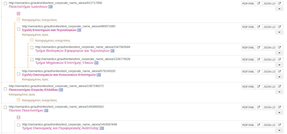Προβολή καταργημένων οντοτήτων και συσχετίσεων σε ένα MADS/RDF CorporateName Λεξιλόγιο